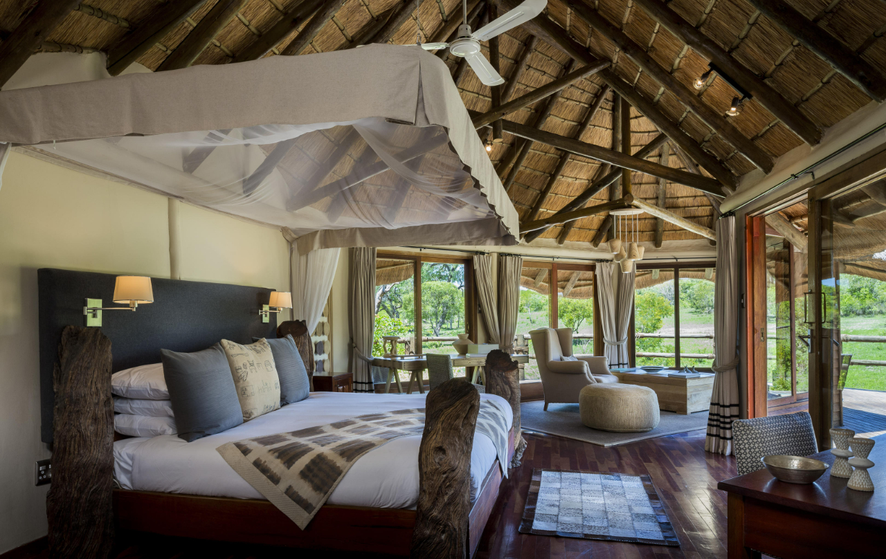 Amidst the renowned Sabi Sand Private Game Reserve, Ulusaba stands as an enchanting wilderness haven, encompassing 13,500 hectares (about 33,000 acres) of pristine open bush. Its defining features include majestic hills that rise dramatically above the surrounding terrain, offering unmatched panoramic vistas within the reserve. The picturesque bushveld, adorned with natural waterholes, sets the stage for exhilarating game drives. Expert rangers guide guests on unforgettable safaris, facilitating encounters with a diverse range of wildlife, including the illustrious Big Five. In this unspoiled paradise, luxurious lodges seamlessly merge with the natural surroundings, offering opulent accommodations within the African wilderness.