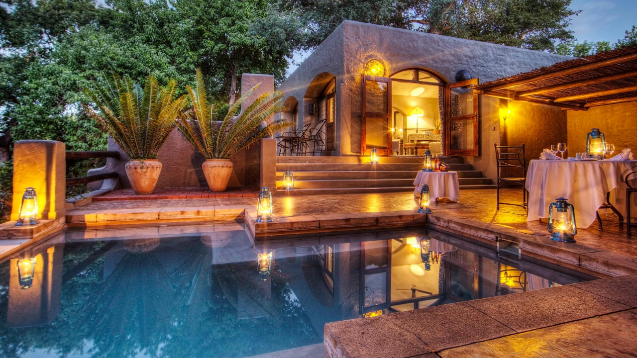 Having explored the area and enjoyed a spectacular wildlife phenomenon on guided day and night game drives, guests can retire after dinner to a splendid fireplace overlooking the river.