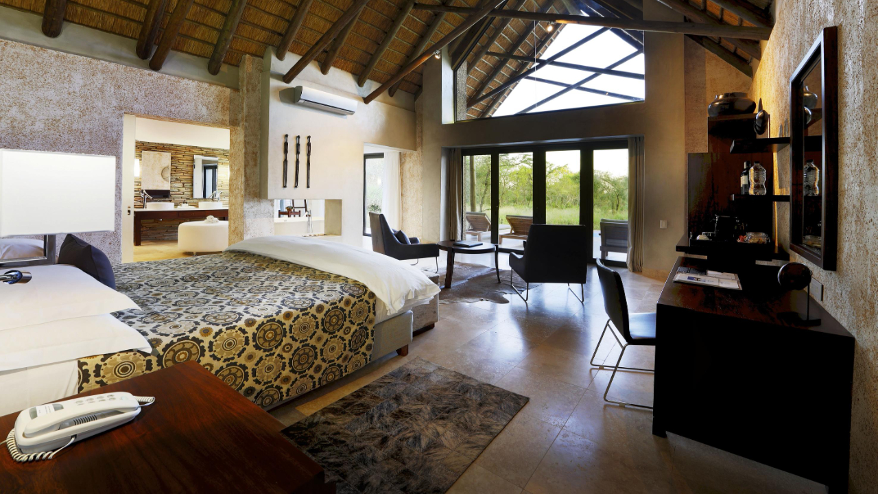 Situated in the south of the Kapama Game Reserve, Kapama Southern Camp boasts 5-star luxury safari accommodation with a tranquil atmosphere. The camp has 15 suites with breathtaking views of the surrounding scenery and landscapes, with all the amenities required for a comfortable stay, including en-suite bathrooms, air-conditioning, minibars and tea and coffee stations. Guests can enjoy game viewing from the private patios with a refreshing sundowner in hand. The luxury suites are spacious and each one has a private lap pool, inside and outside showers, mini bar, espresso machine and warming fireplace. Families can enjoy a stay at the family luxury suites, with a lap pool, separate connected bedroom for children and an outdoor patio.