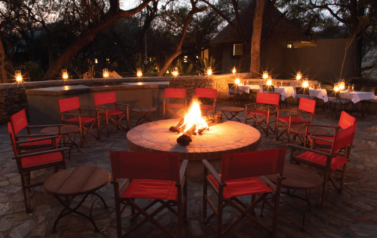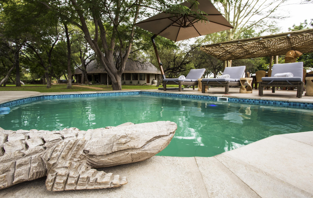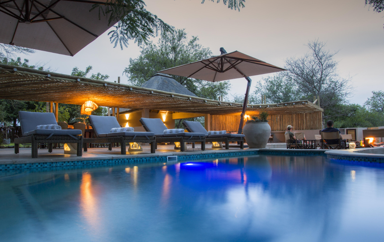 This elegant safari lodge is the perfect mix of authentic tradition with a modern twist. The convivial and art-filled living areas lead out to expansive terraces. Beyond lies the mature indigenous garden which naturally evoke a sense of tranquillity and relaxation. Enjoy the serenity of the many huge fever and baobab trees, read a book in the swing chair, or watch the game at the waterhole where animals come to drink through the day.