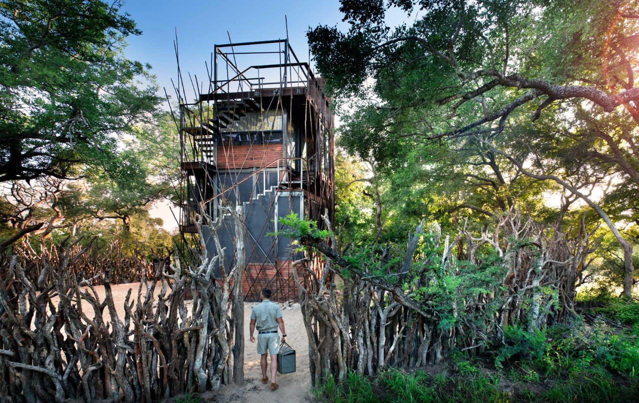 andBeyond Ngala Treehouse is ideally located within the Ngala Private Game Reserve. The Treehouse features two sleep levels including a covered and weatherproof space with a king-size bed, hot running shower and flushing toilets. Other amenities include mosquito nets, a personal bar and coffee station, Solar power charging facilities, and picnic or tapas-style dining. Guests can experience the romance of Africa in a safe yet remote retreat in the middle of the reserve.
