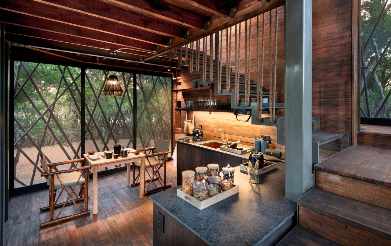 andBeyond Ngala Treehouse is ideally located within the Ngala Private Game Reserve. The Treehouse features two sleep levels including a covered and weatherproof space with a king-size bed, hot running shower and flushing toilets. Other amenities include mosquito nets, a personal bar and coffee station, Solar power charging facilities, and picnic or tapas-style dining. Guests can experience the romance of Africa in a safe yet remote retreat in the middle of the reserve.
