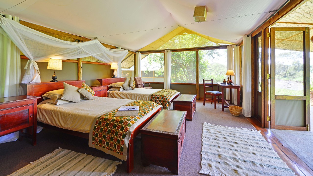 Mihingo Lodge is a peaceful and exclusive retreat adjacent to Lake Mburo National Park and features ten comfortable rooms which are built on wooden platforms. Each luxury tented room is nestled on a private piece of the lodge’s property, enabling guests to enjoy the tranquil environment in complete seclusion. Placed in varied settings, some rooms are situated in a forest, some with a lake view, and some on rocky outcrops.