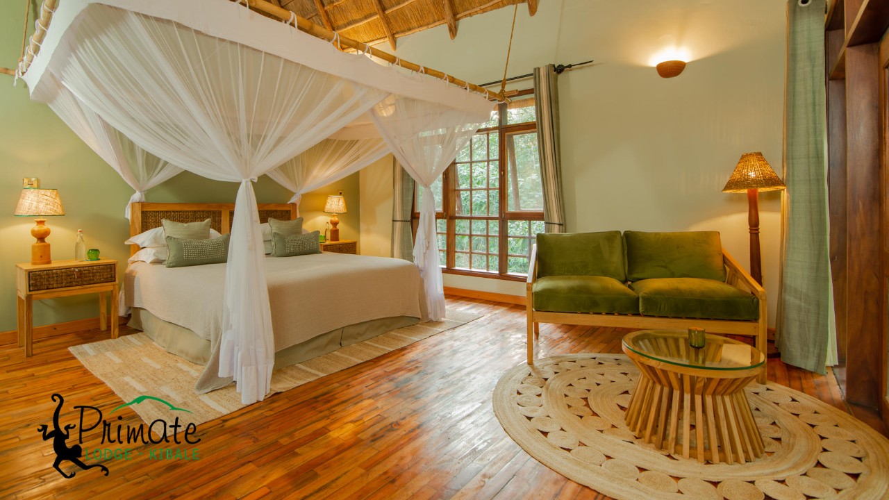 Primate Lodge in Kibale is an exclusive eco-lodge situated in the heart of Kibale Forest National Park. It is surrounded by a lush tropical forest that is home to 13 different species of primates, including the chimpanzees. Privately secluded in the rainforest, this safari lodge offers you a truly authentic jungle experience and is the perfect gateway for tracking the primates in Uganda. Whether you wish a high level of luxury and comfort, rather stay in a midrange cottage or want to bring your own tent, Primate Lodge Kibale is the ideal place for you. Primate Lodge Kibale was awarded with the Chimp Award 2008 for Investment in Eco-Tourism by Uganda Wildlife Authority.