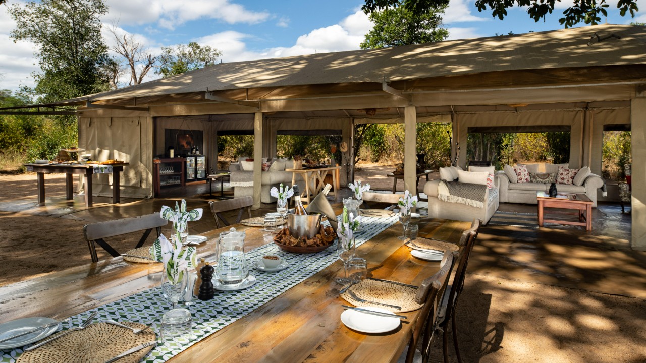 Ingwe Pan is situated at a secluded pan in the wilderness area of Mana Pools National Park, just a few kilometres inland of the Zambezi River and within walking distance of the Chiruwe river bed. The pan is one of the biggest in the park and is surrounded by a grove of large ebony trees. A magnificent fig and ancient ebony form the canopy of the main lounge and dining area of the camp. An ancient baobab is a few minutes walk from the camp and the perfect spot for picnics and sundowners in the evening.